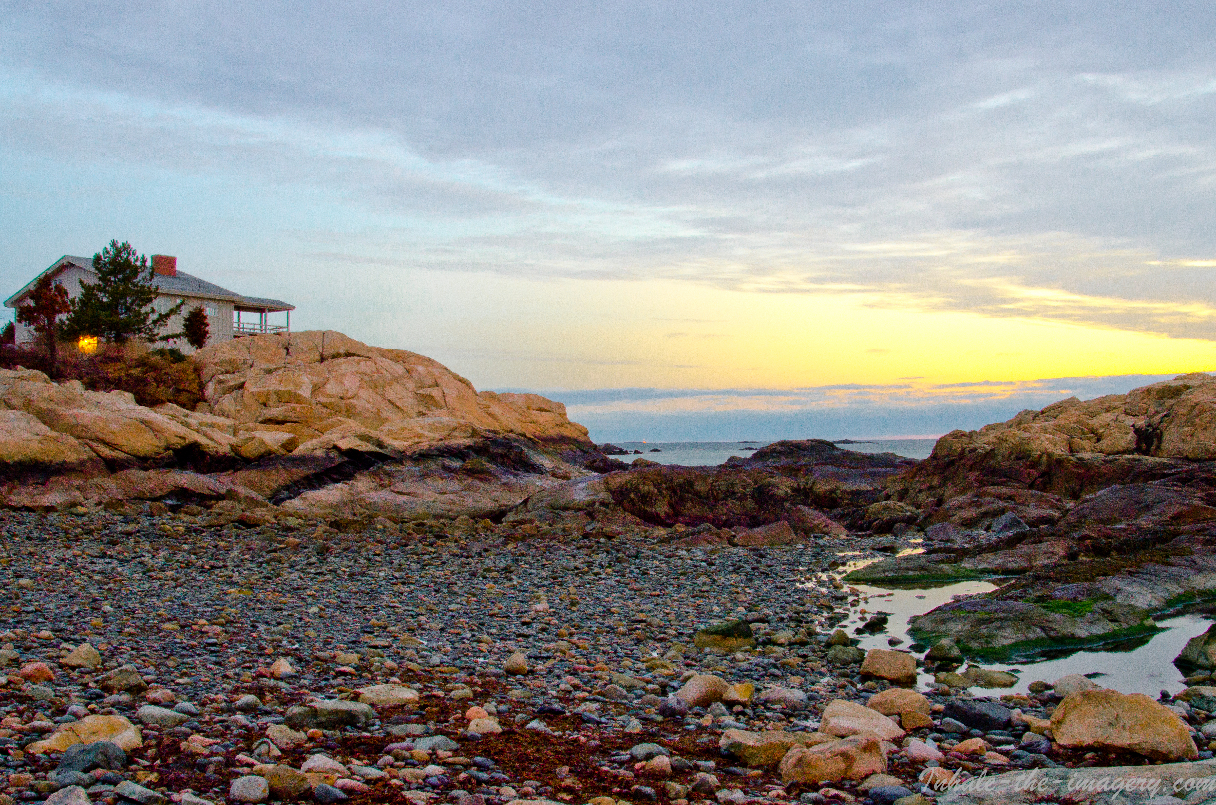 Early morning shot at the entrance to the Glades in Minot/North Scituate. A spit of land that defines the outer-land of the small Cohasset Harbor. At the end of the spit is the John Quincy Adams Estate and is still owned by Quincy family and used by the descendants as a retreat, If you are related to the Adams line you may be able to use the estate. I can picture John Quincy Adams passing this rock outcrop on his way to the estate; maybe taking time to stop and perch himself on the rock and soak in the views.