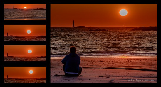 I set up on Sandy Beach for the Sunrise Project and as the sun was rising I noticed what appeared to be swirling ocean mist and it was moving, slowly… I reached a little further with the 300mm lens, focused and hit the shutter release for the 2nd, 3rd and 4th times… The swirling Atlantic phantom continued; moving in a northerly direction, towards rising sun.. I was hooked, wondering what it was; an optical illusion perhaps.. but it moves….Maybe the left-over exhaust from a large ocean-going vessel’s stack… but it’s not dispersing..yep, I was hooked…I set timer and fired once more as I watched its meandering progress.. What ever it was it brought back great memories. Memories of Arizona; backpacking with friends in desert sands… camp set.. banter flowing…beer in hand….watching dust-devils swirl on desert-ocean floor.